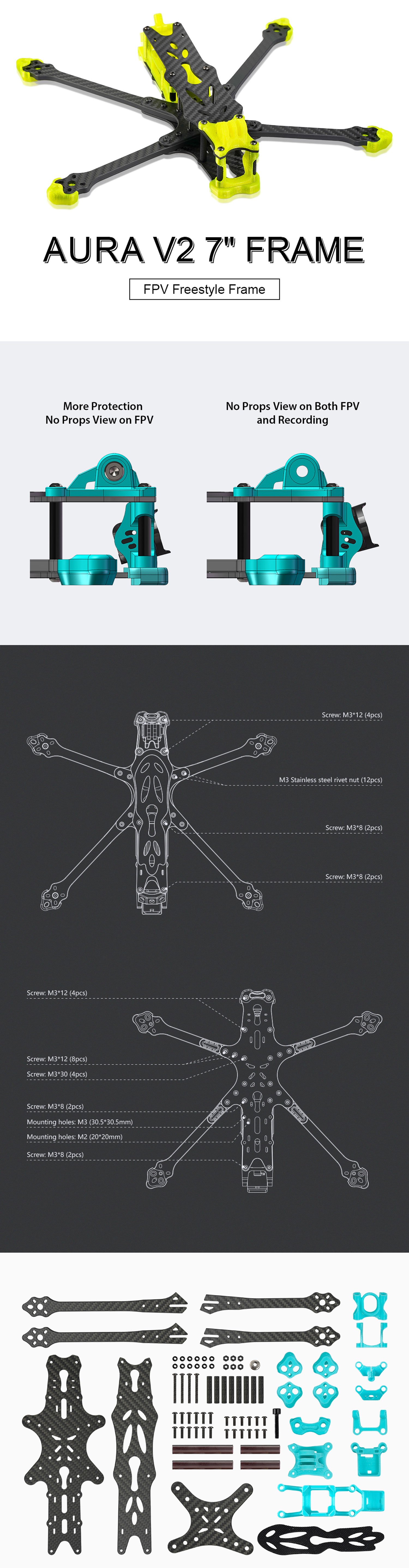 The frame Foxeer AURA 7" V2 Deadcat it is a universal frame suitable for Long Range "Freestyle" and "Long Range" flight.